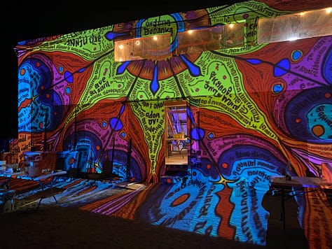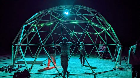 We are in this together, and in addition to AI Art we create the living environment we want to hang out in during Mars. We will build a club house, some form of kitchen, and trailers, ‘hexapods’ or pallet rack apartments to live in. We very much rely on participant effort to make our shows happen and keep our gallery, kitchen and clubhouse tidy. How exactly meals happen and other lifestyle stuff will emerge based on the desires and effort of the people who show up.